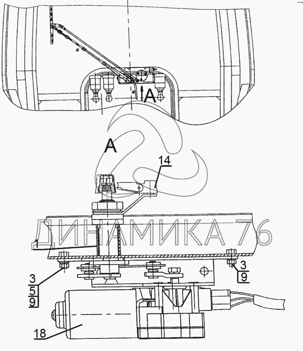 Установка переднего стеклоочистителя — МТЗ-3522:
