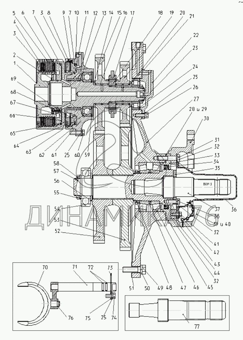 Перечень комплектующих от ВОМ задний на МТЗ-3522