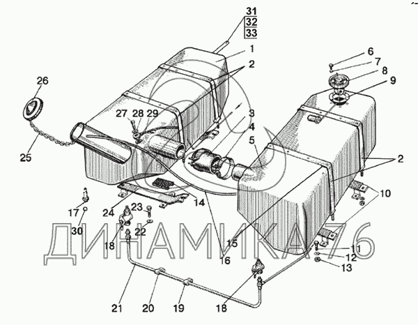 Перечень комплектующих от Баки топливные на МТЗ-510/512, 520/522
