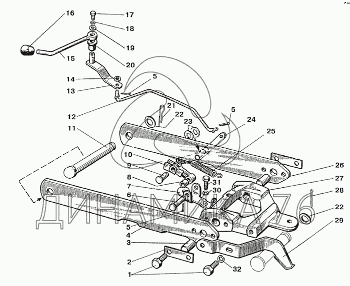 Механизм фиксации на МТЗ-510/512, 520/522 (до 2010 г.)