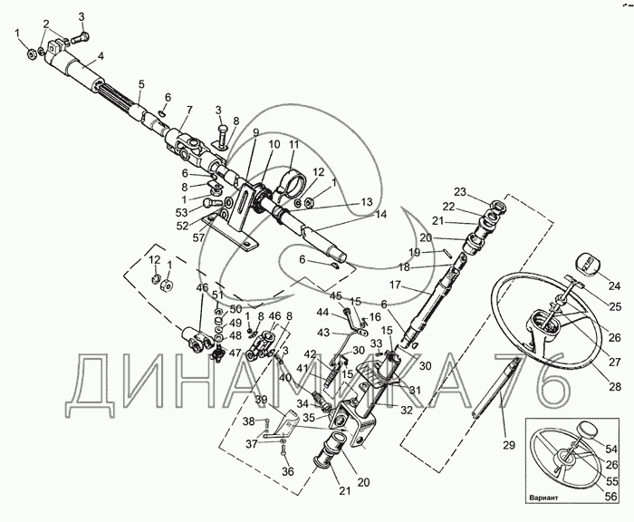 Перечень комплектующих от Привод управления рулевого на МТЗ-510/512, 520/522