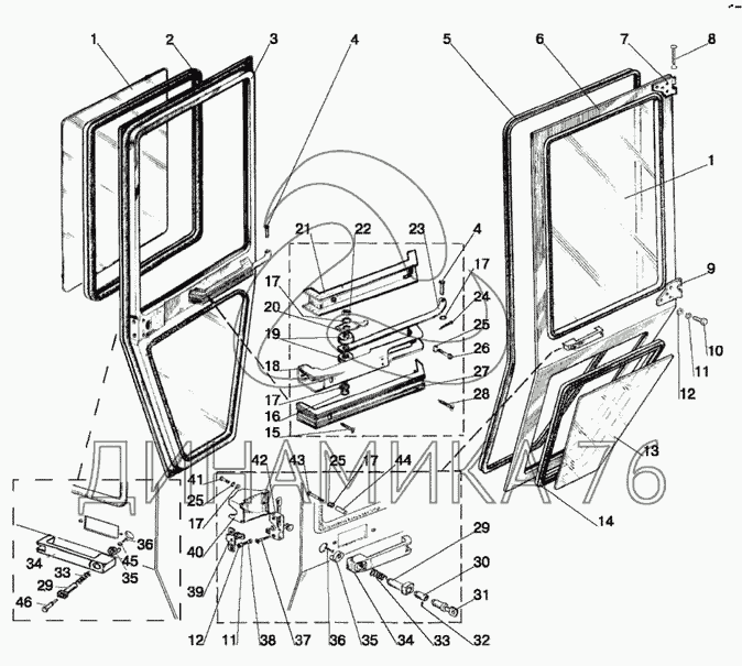 Перечень комплектующих от Двери кабины на МТЗ-570