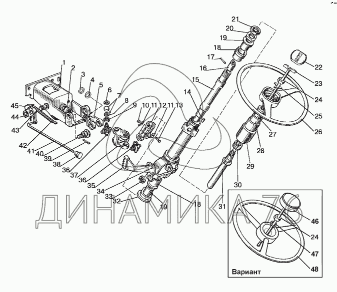 Схемы запчастей предназначены для справочных целей! Мы продаем не все запчасти от Колонка рулевая на МТЗ-570, представленные в этом списке.