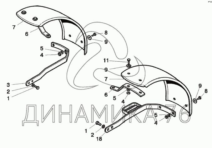 Перечень комплектующих от Крылья передние (с передней осью) на МТЗ-570