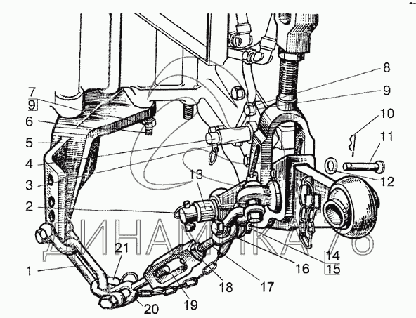 Схемы запчастей предназначены для справочных целей! Мы продаем не все запчасти от Наружная блокировка нижних тяг на МТЗ-570, представленные в этом списке.
