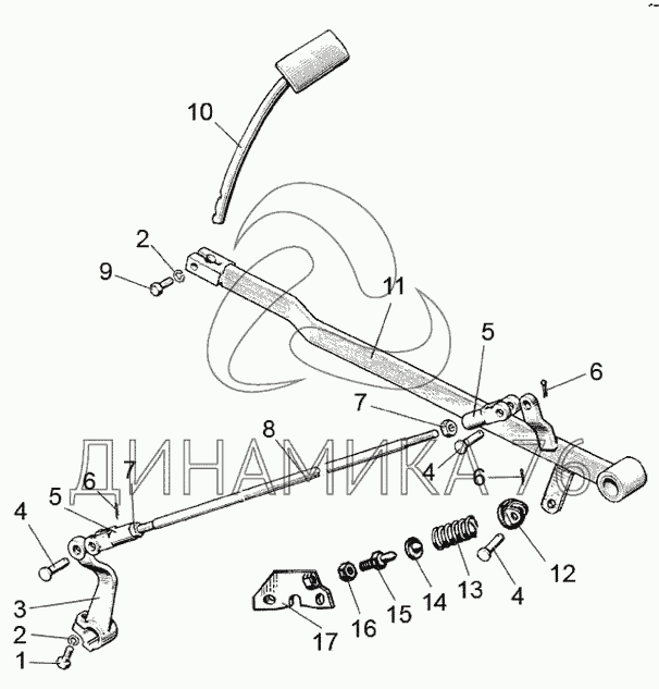 Перечень комплектующих от Управление сцеплением на МТЗ-570