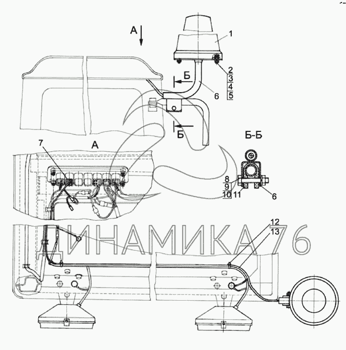 Перечень комплектующих от Установка маяка сигнального на МТЗ-570