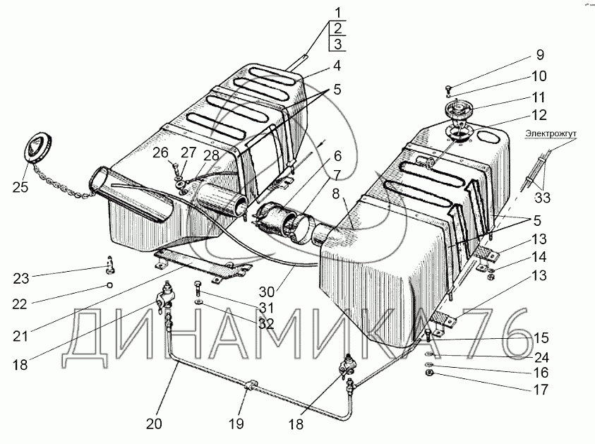 Перечень комплектующих от Баки топливные (пластмассовые) на МТЗ-80.1
