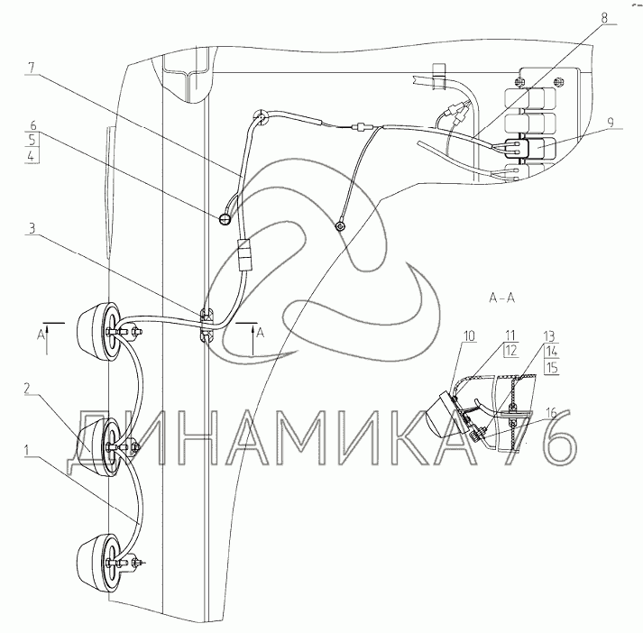 Перечень комплектующих от Установка фонарей автопоезда на МТЗ-80.1