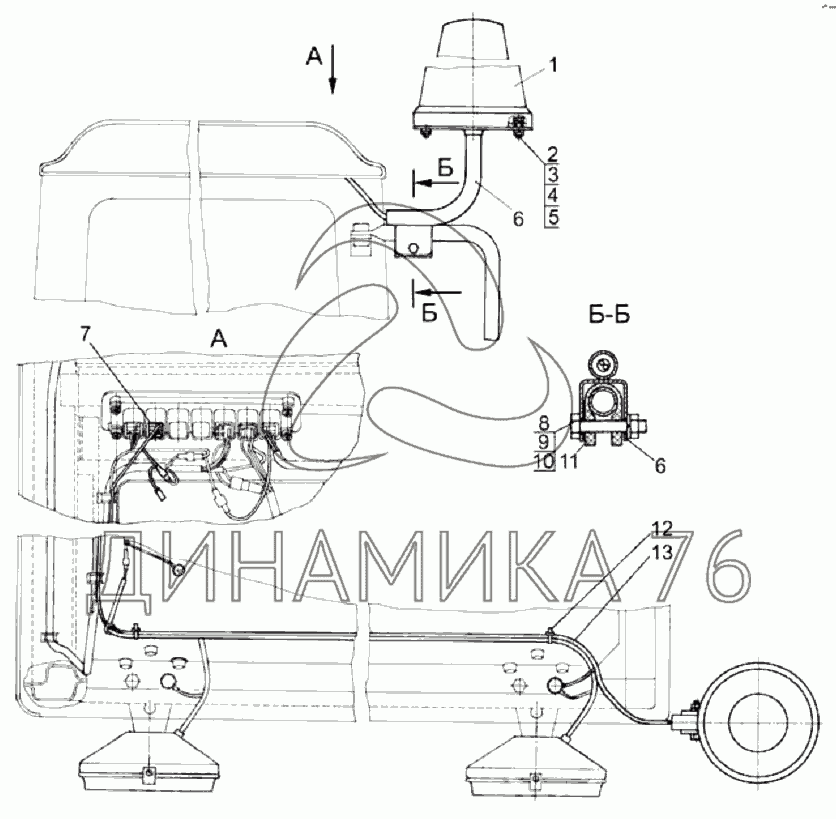 Перечень комплектующих от Установка маяка сигнального на МТЗ-80.1