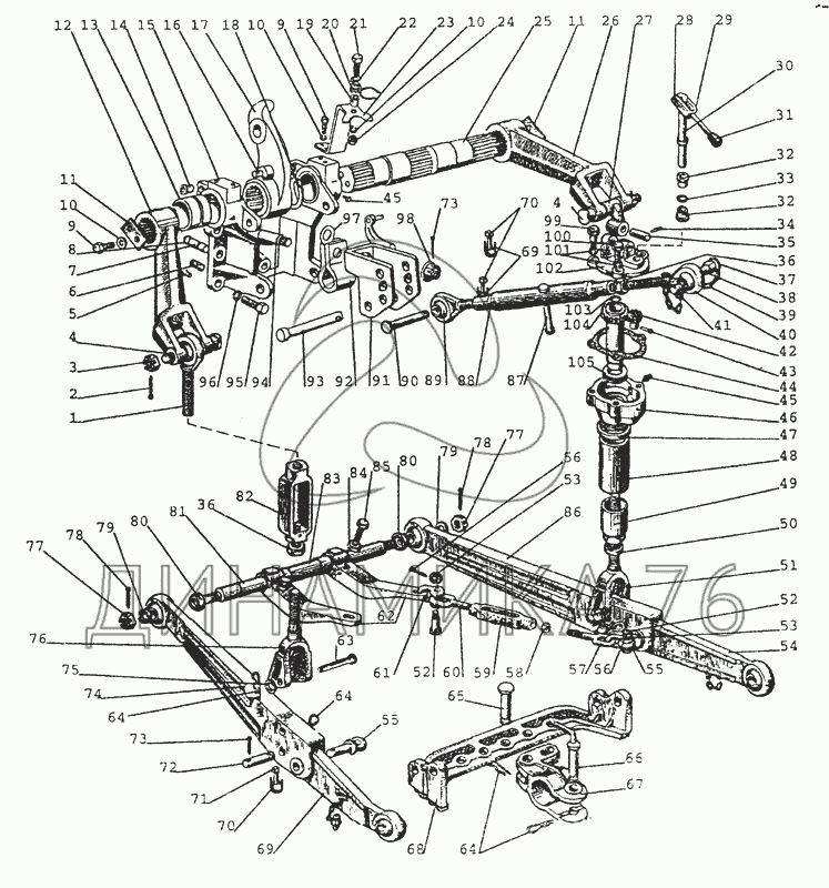 4605 Механизм задней навески на МТЗ-80 (2002) (до 2002 г.)
