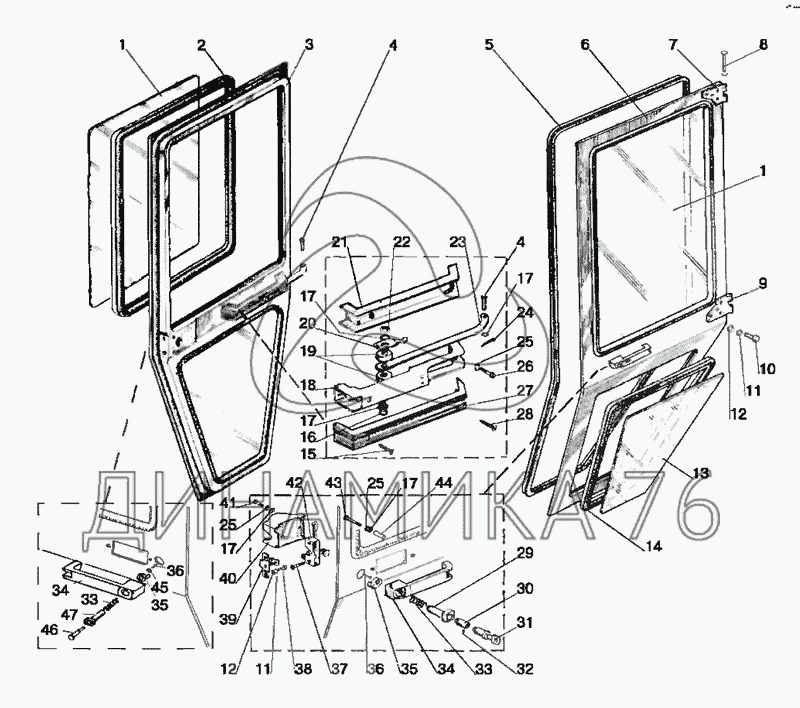 Перечень комплектующих от Двери кабины на МТЗ-80 (2009)