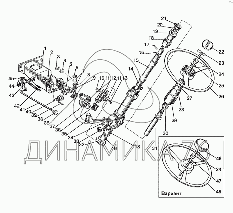 Колонка рулевая для насоса-дозатора НД-80 и щитка приборов 80-3805010 в сборе