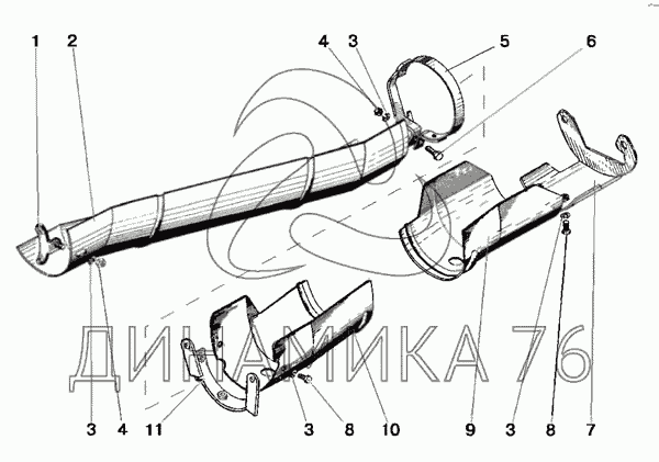 Перечень комплектующих от Ограждение карданного вала на МТЗ-80 (2009)