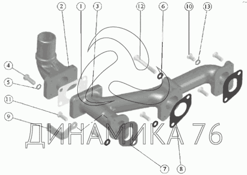 Перечень комплектующих от Установка выпускного коллектора на МТЗ-80 (2009)