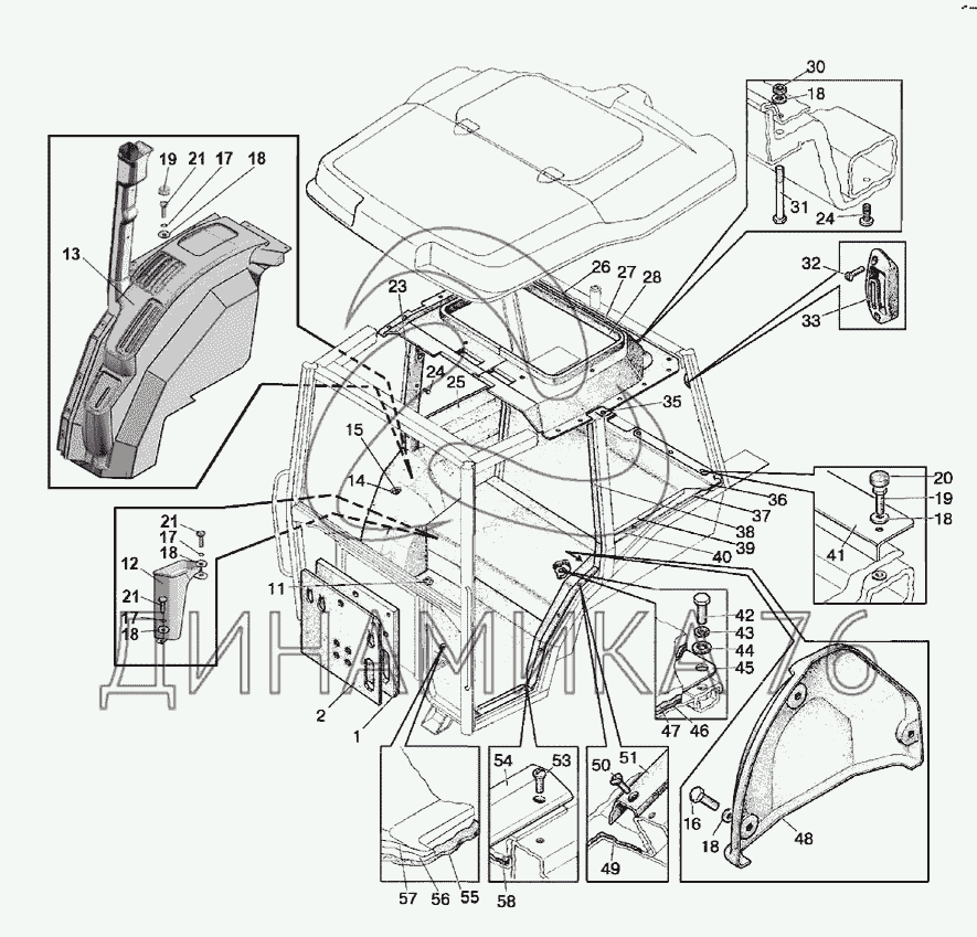 Перечень комплектующих от Кабина трактора на МТЗ-821/921