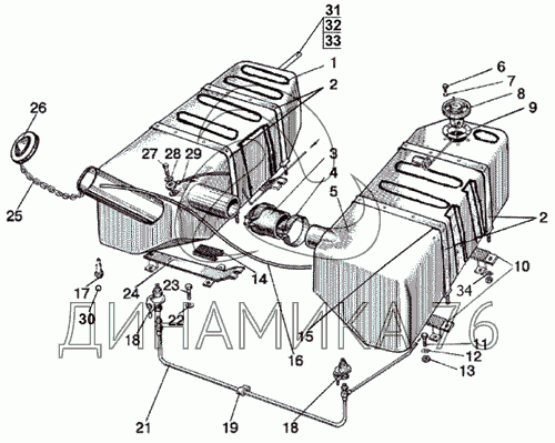 Перечень комплектующих от Баки топливные на МТЗ-826