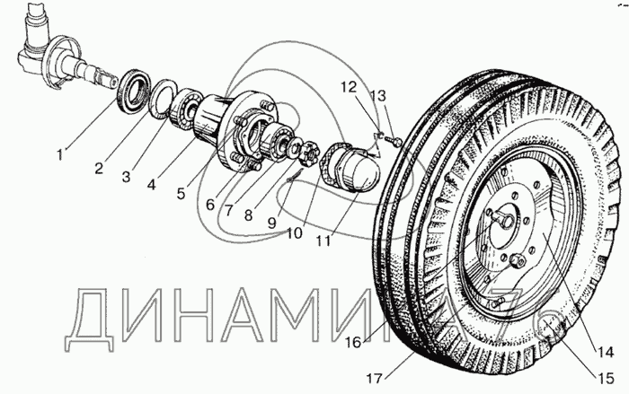 Перечень комплектующих от Колеса передние направляющие, ступицы передних колес на МТЗ-826