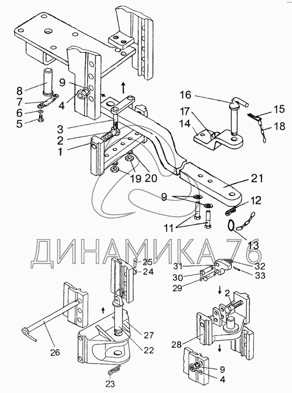 Перечень комплектующих от Тягово-сцепное устройство, варианты комплектации на МТЗ-826
