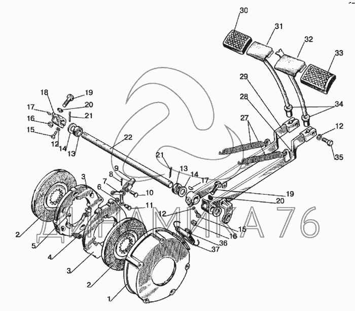 Перечень комплектующих от Управление тормозами (сухого трения) на МТЗ-826