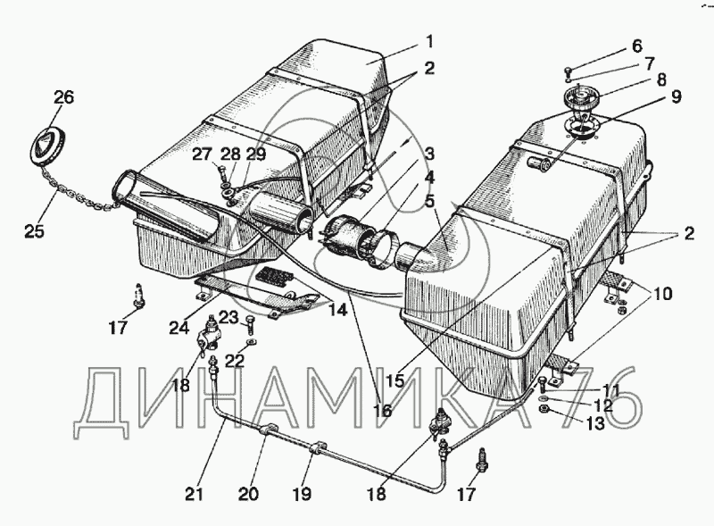 Перечень комплектующих от Бак топливный на МТЗ-90/92