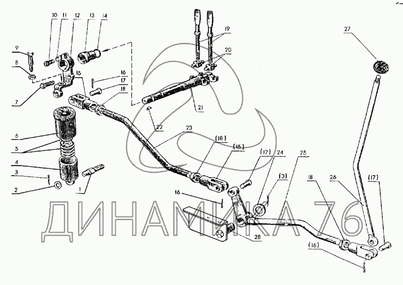 Валик управления с осью в сборе