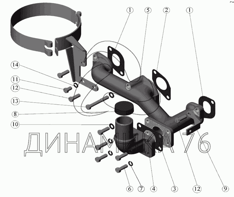 Перечень комплектующих от Установка выпускного коллектора на МТЗ-90/92