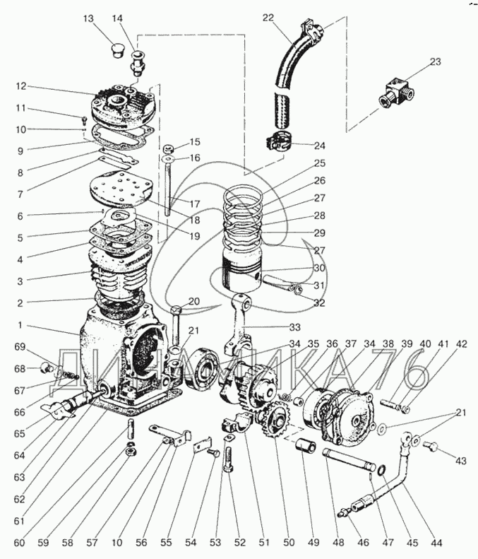 Компрессор 1-8,10,11,13-19,21,30-39,41-43,45, 47,50-53,57,65-67,69