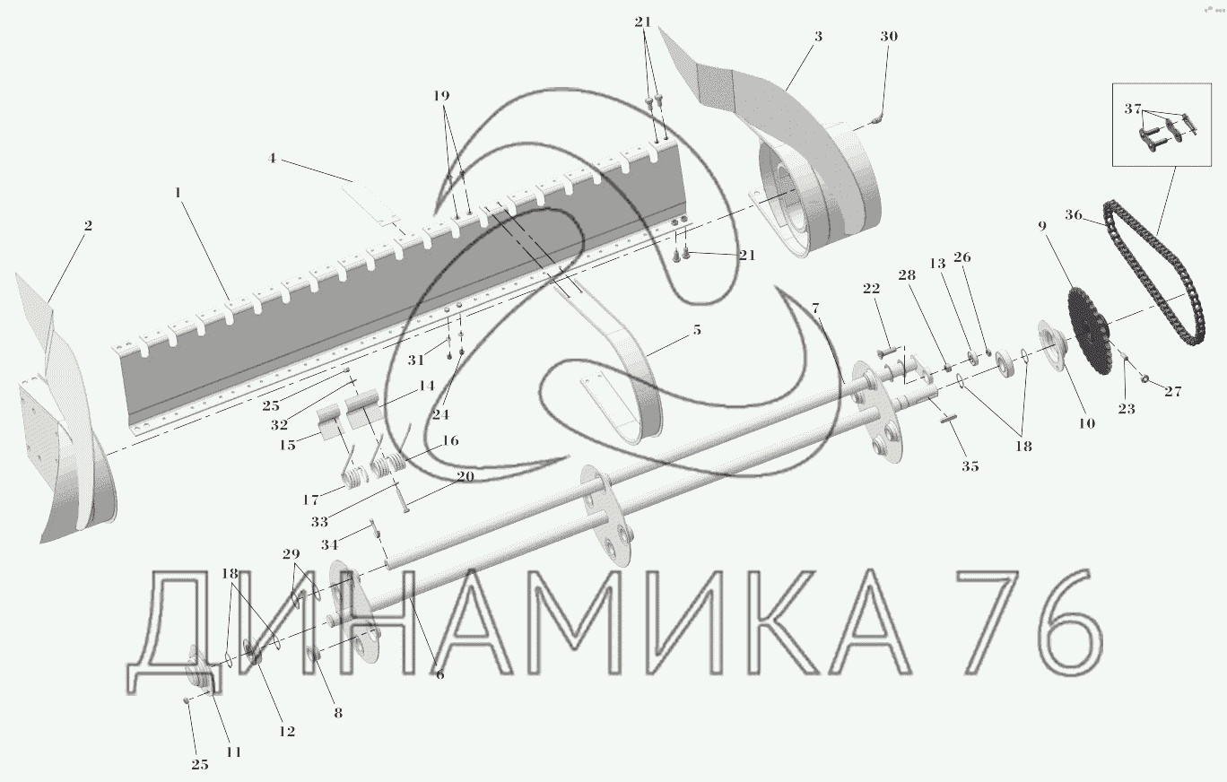 Левая сторона подборщика с эксцентриком