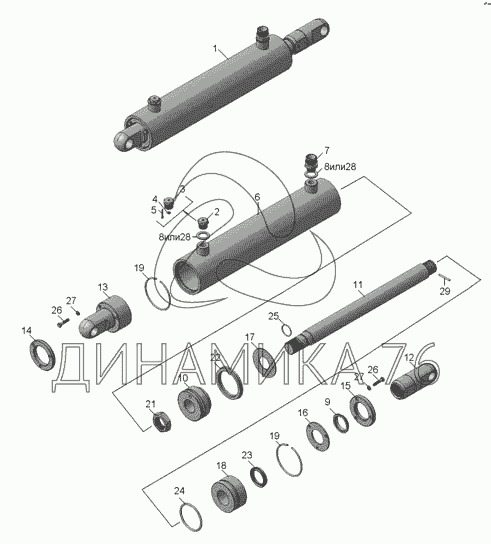 Перечень комплектующих от Гидроцилиндр на ГВД-1-Ф-6,0