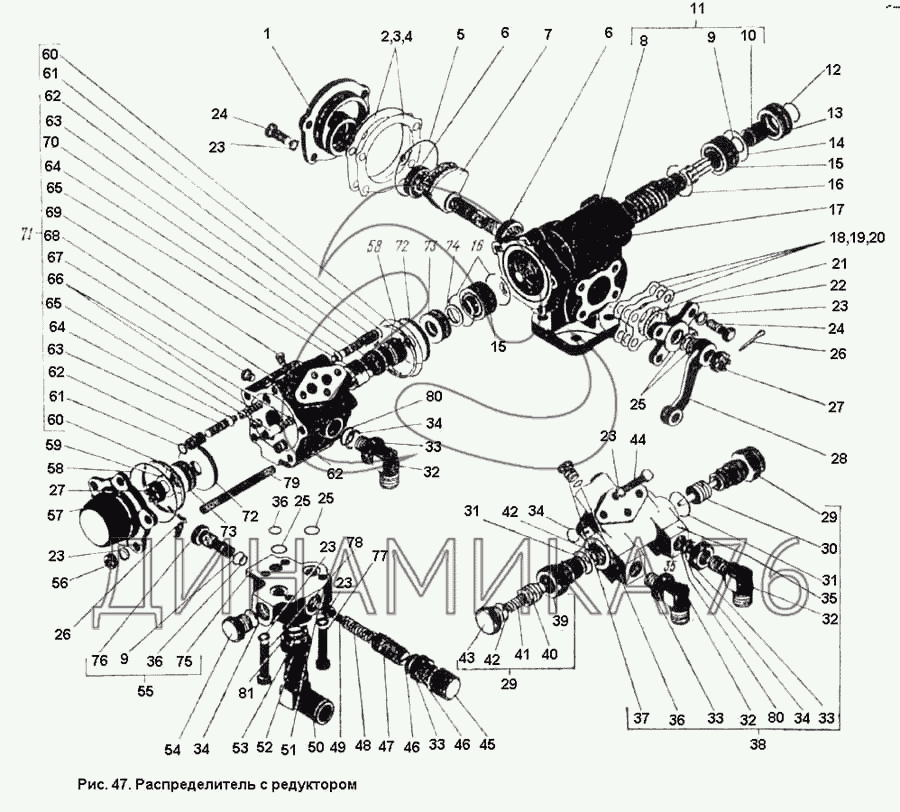 Перечень комплектующих от Распределитель с редуктором на К-701