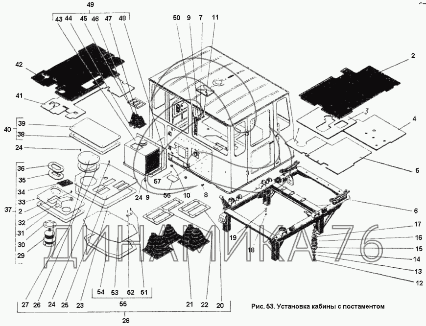 Схемы запчастей предназначены для справочных целей! Мы продаем не все запчасти от Установка кабины с постаментом на К-701, представленные в этом списке.