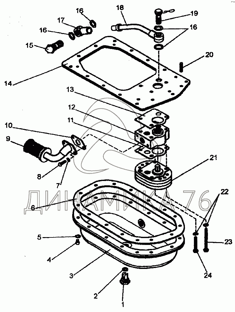 Перечень комплектующих от Поддон коробки передач с насосом на K-744P1