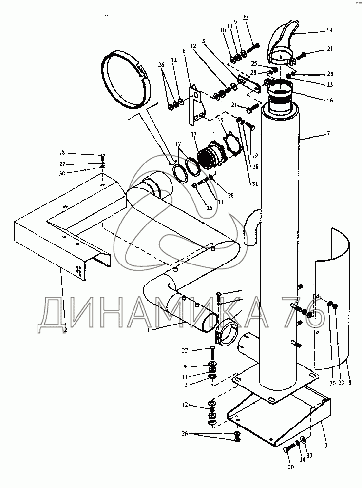 Система выпуска отработавших газов на K-744P1 (до 2001 г.)
