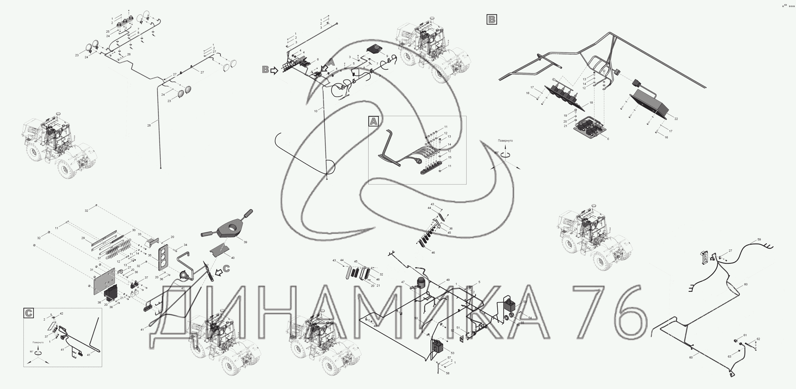 Схемы запчастей предназначены для справочных целей! Мы продаем не все запчасти от 744Р2-3799000 Электрооборудование кабины на К-744Р2 "Стандарт", представленные в этом списке.