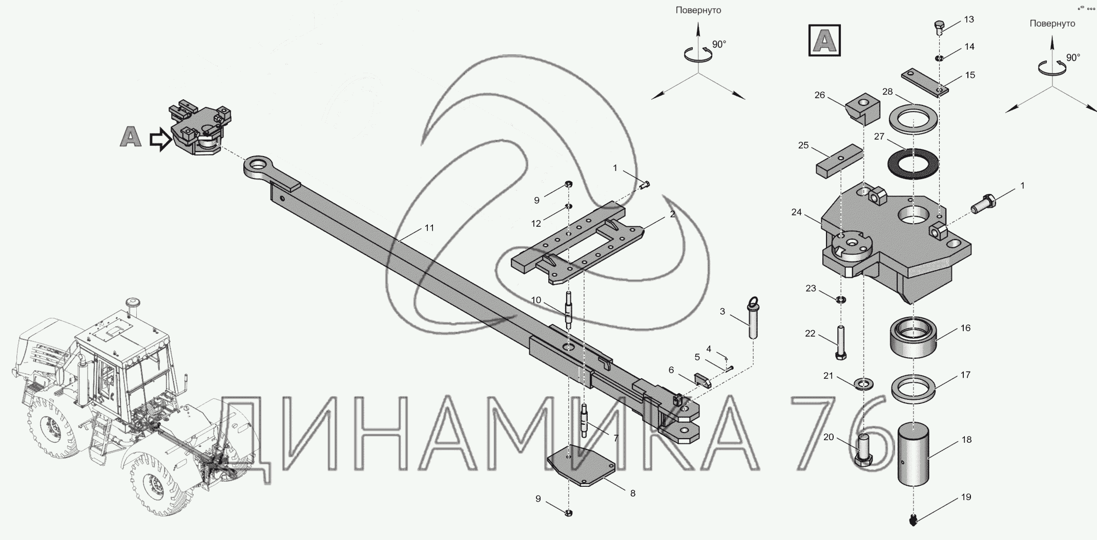 Перечень комплектующих от 744Р1-4642000 Маятниковое прицепное устройство на К-744Р4 "Премиум"