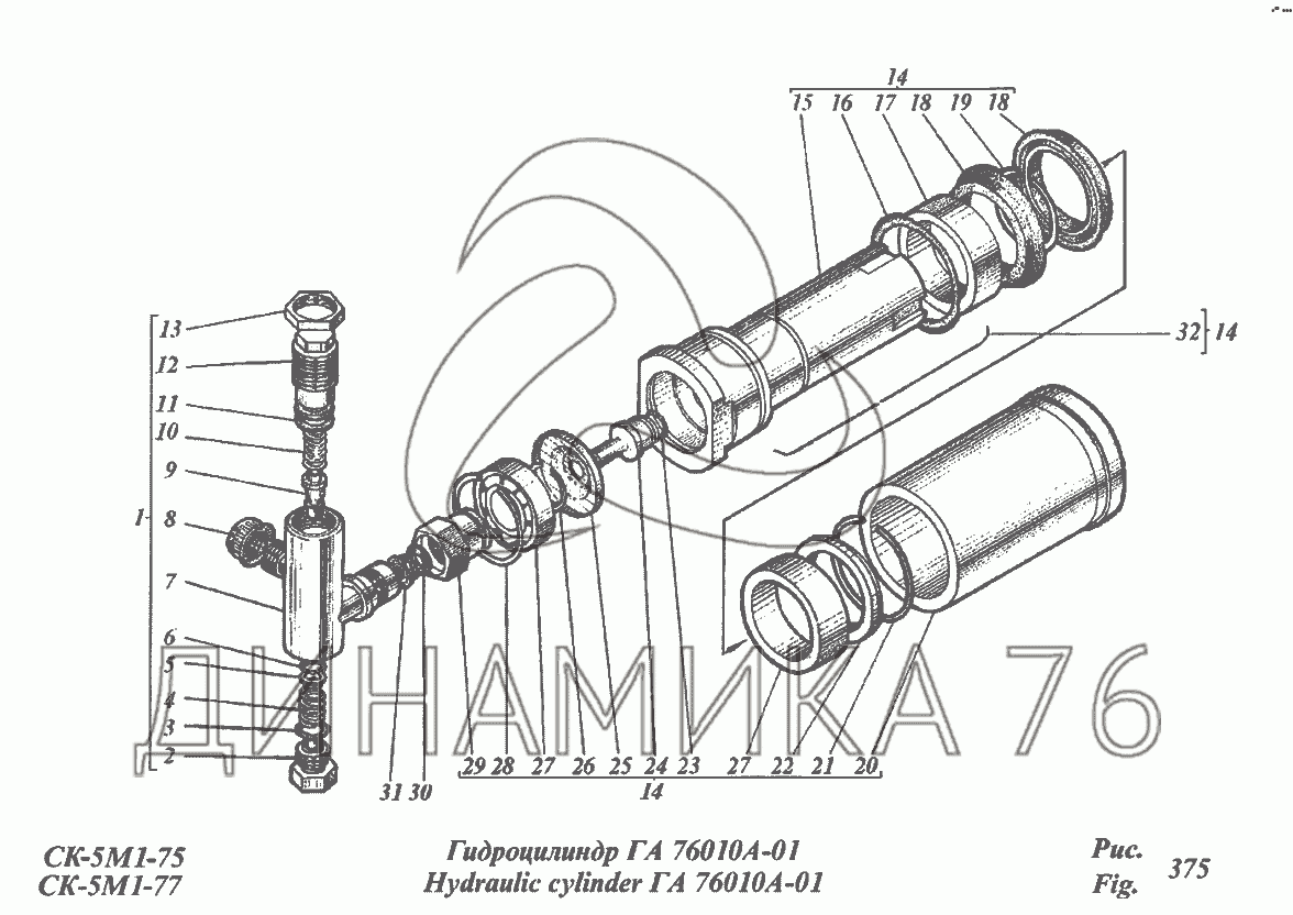 Перечень комплектующих от Гидроцилиндр ГА-76010А-01 на CK-5М-1 «Нива»