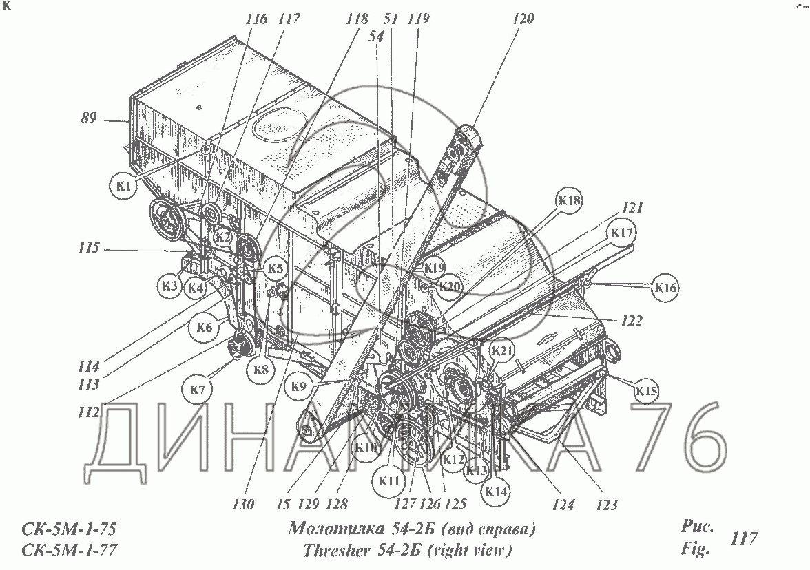 Перечень комплектующих от Молотилка 54-2Б на CK-5М-1 «Нива»
