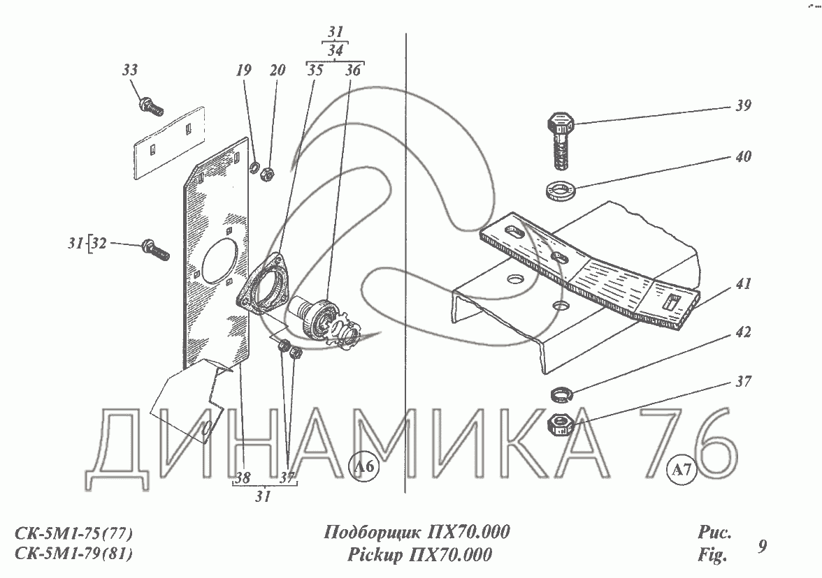 Перечень комплектующих от Подборщик ПХ70.000 на CK-5М-1 «Нива»