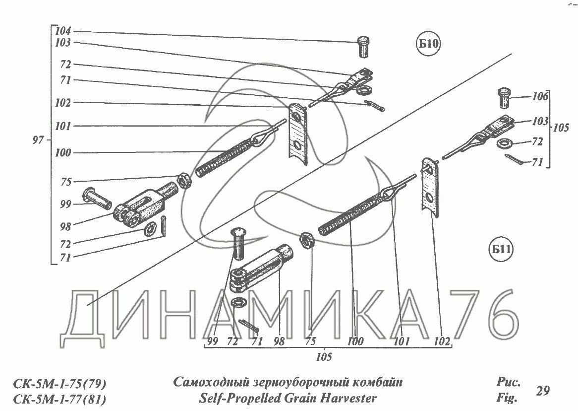 Перечень комплектующих от Самоходный зерноуборочный комбайн на CK-5М-1 «Нива»