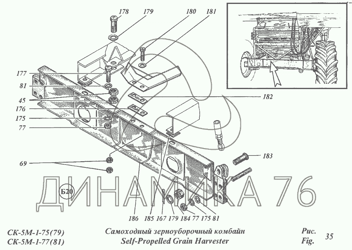 Перечень комплектующих от Самоходный зерноуборочный комбайн на CK-5М-1 «Нива»
