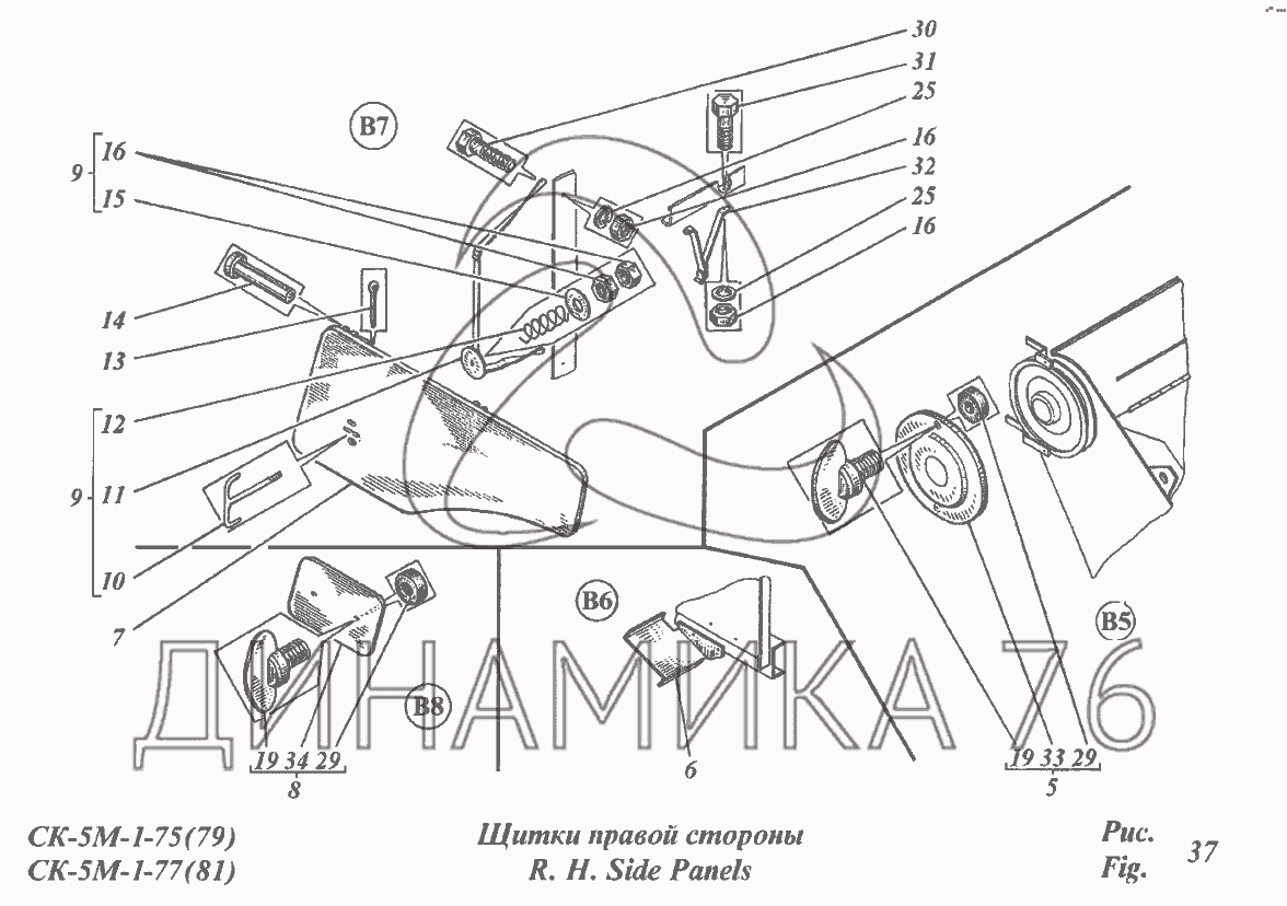 Схемы запчастей предназначены для справочных целей! Мы продаем не все запчасти от Щитки правой стороны на CK-5М-1 «Нива», представленные в этом списке.