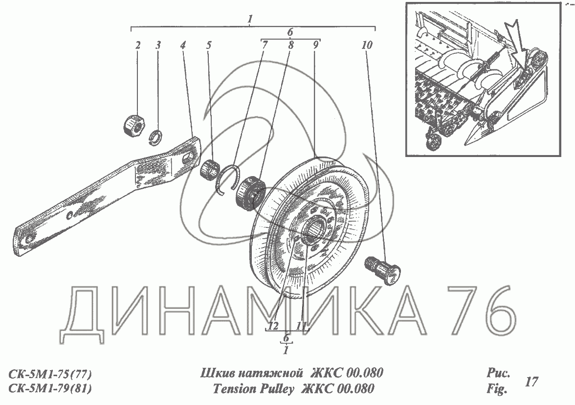 Перечень комплектующих от Шкив натяжной ЖКС00.080 на CK-5М-1 «Нива»