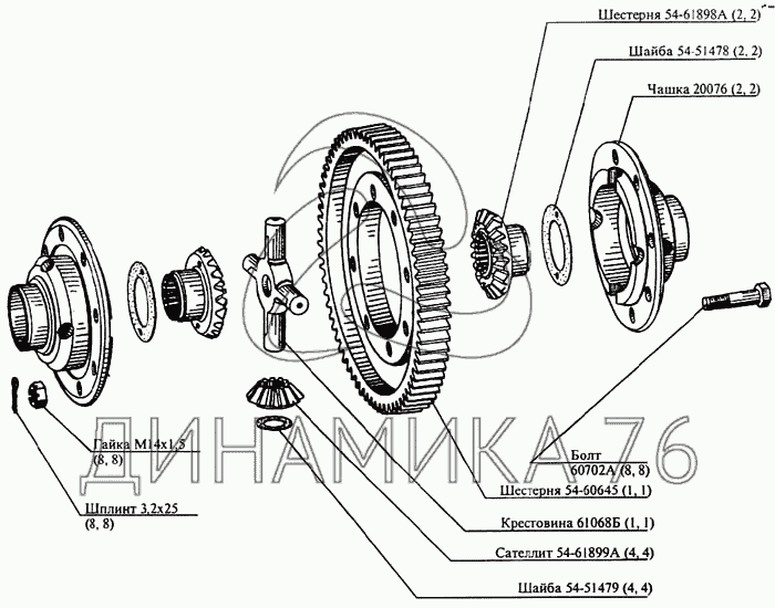 Перечень комплектующих от Дифференциал на CK-5М-1 «Нива»