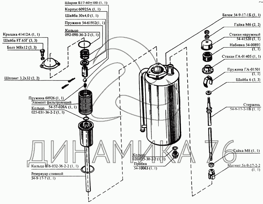Перечень комплектующих от Гидробак на CK-5М-1 «Нива»