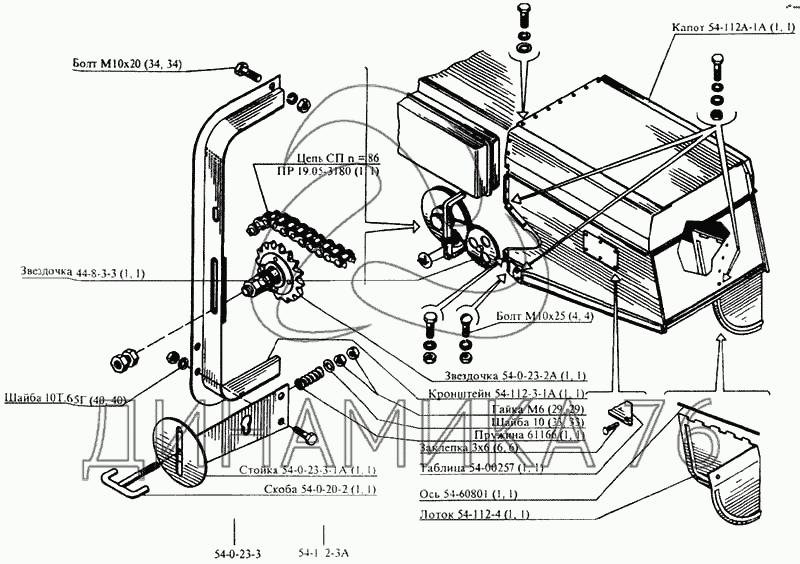 Перечень комплектующих от Капот соломотряса на CK-5М-1 «Нива»