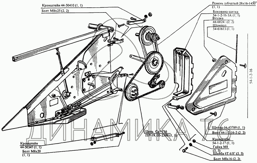 Перечень комплектующих от Механизм левой жатки на CK-5М-1 «Нива»