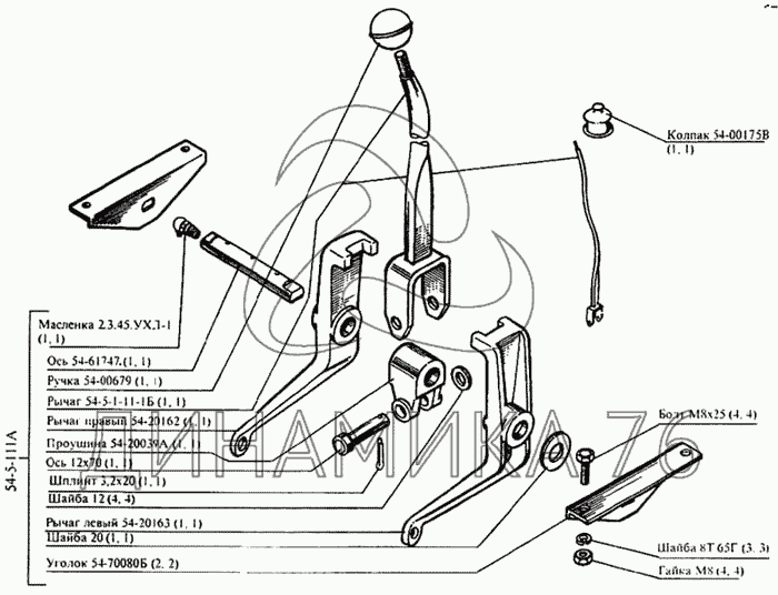 Перечень комплектующих от Механизм переключения скоростей на CK-5М-1 «Нива»
