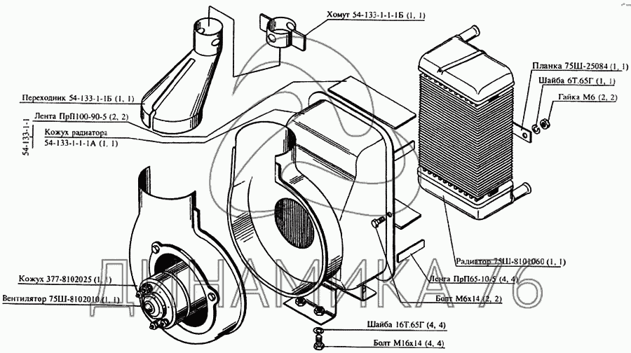 Перечень комплектующих от Отопитель на CK-5М-1 «Нива»