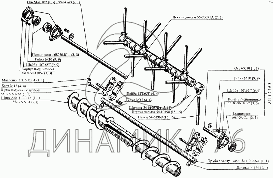 Перечень комплектующих от Пальчиковый механизм шнека жатки на CK-5М-1 «Нива»